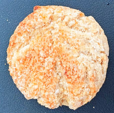 A lemon sugar cookie baked with white chocolate chips and rolled in lemon sugar